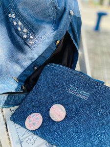 ポーチや手持ちのワンピースへ、ワンポイントを入れてみました。