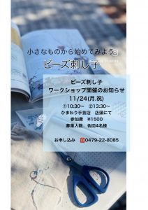 New! ビーズ刺し子ワークショップ開催のお知らせ
