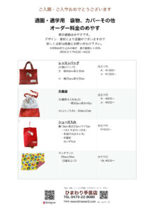 下記のほかにもお弁当入れやランチマット、ふとんキャリーバッグやふとんカバーなど、ご希望のサイズにてお作りしております。